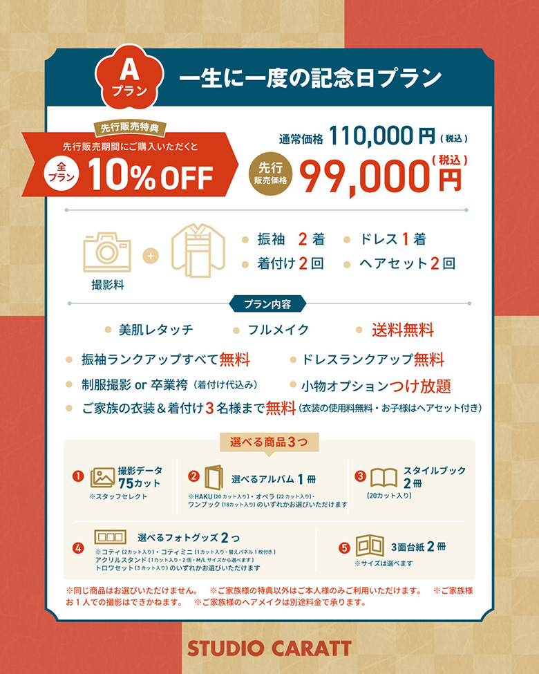 おすすめポイント!「振袖も家族写真も、全部ちゃんと残したい」「後悔したくない」方はA一択。