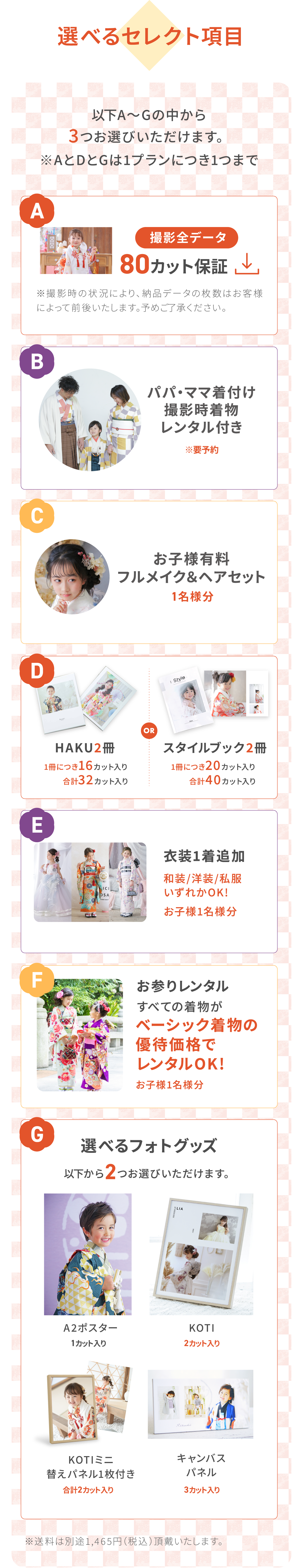 ※七五三1dayPlan、出張撮影を除く全プランに適応となります。