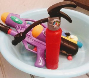 中でも消火器の形をした水鉄砲は子どもの心を鷲掴み。