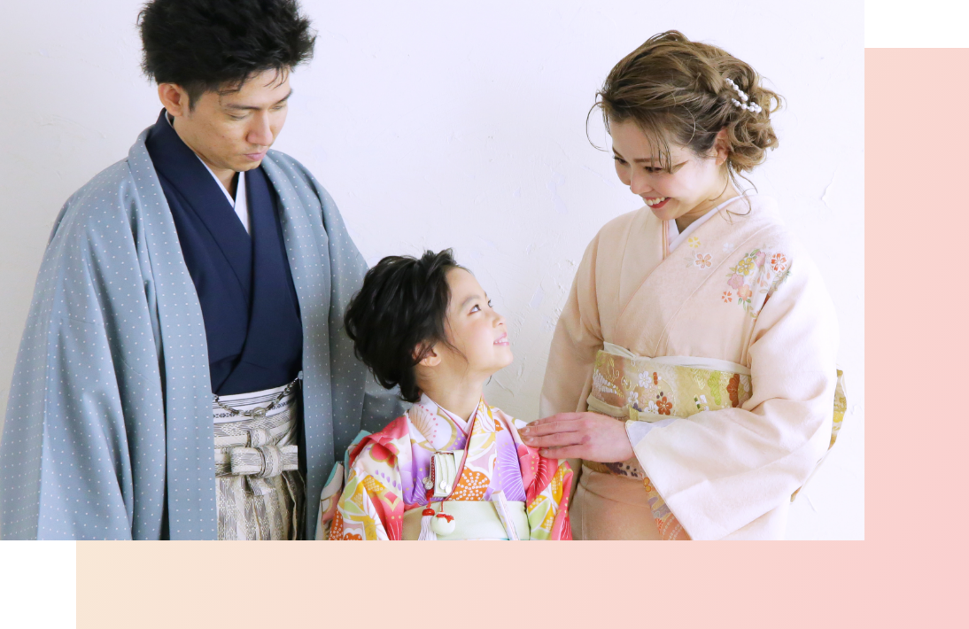 キッズ・マタニティ:お宮参りやお誕生日の撮影では1時間〜1時間半、七五三の撮影では2時間〜4時間が目安です。